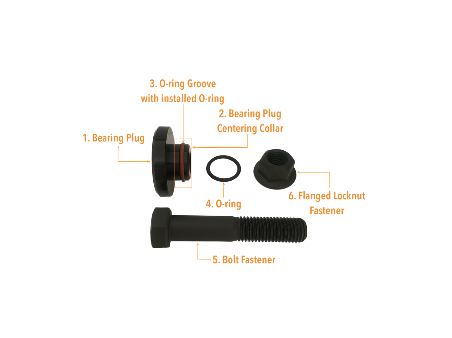 Step 4: Insert the provided bolt through the bearing plug with the collared side of the bearing plug facing towards the threaded portion of the bolt.